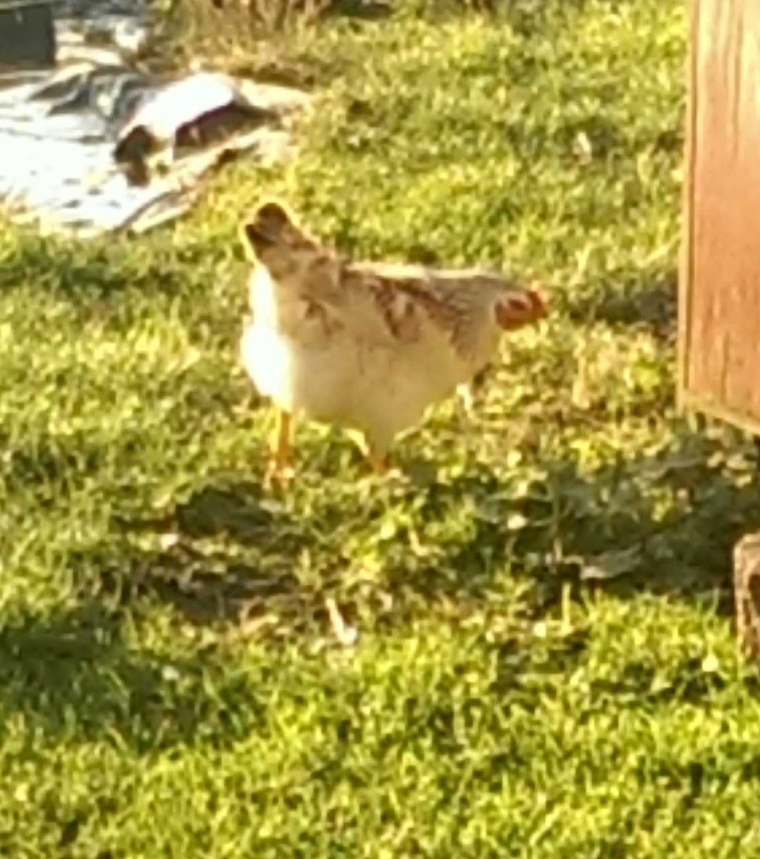 Check out how our chicks from last year are doing. Aren’t they getting big? It turned out that four of them are roosters and two are hens. Orla is checking in on them regularly and is keeping us updated. They are loving life in Sligo. Cock – a – Doodle – D0!!